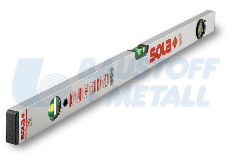Нивелир алуминиев SOLA AVD 60, дължина 60 см, за хоризонтално, вертикално измерване и под наклон с толеранс на измерване, стандартна позиция: 0,50 mm/m (0,029°), по-добро, по-бързо и по-точно отчитане чрез патентованите флакони SOLA FOCUS, с подобрена четливост при слаба светлина благодарение на оптимизираната светеща подложка SOLA, с висока точност на измерване в стандартно и обърнато положение и устойчиви на счупване либели от акрилно стъкло с увеличителна леща (+20%) и 30 години гаранция срещу изтичане, от здрав алуминиев профил и с ударопоглъщащи крайни капачки, размери: 49 х 21 х 600 мм, производител SOLA-Австрия