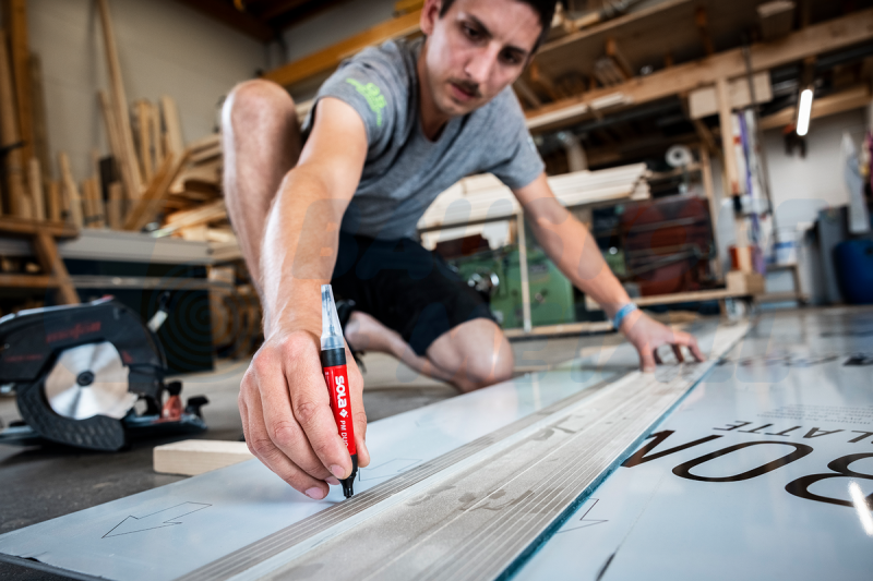 Водоустойчивото и бързосъхнещо мастило пише надеждно без размазване върху гладки и сухи материали като стъкло, метал, камък и пластмаса