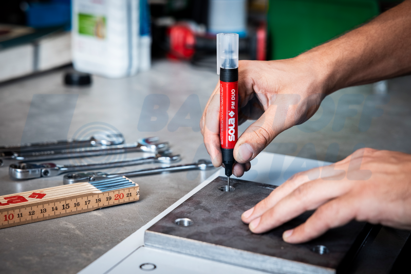 Лесно маркиране на отвори за пробиване и труднодостъпни места благодарение на фин писец от неръждаема стомана