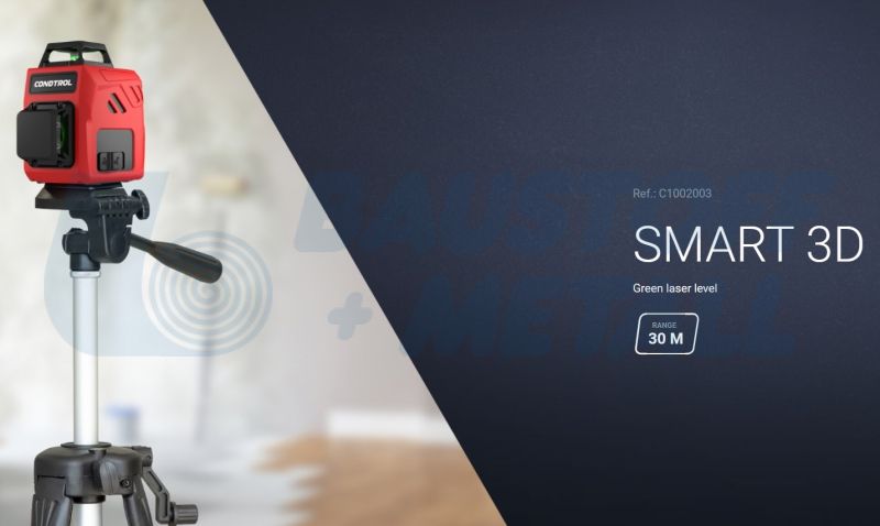 Лазарен нивелир зелен Condtrol SMART 3D с 3 x 360° зелени линии (2 вертикални + 1 хоризонтална), като линиите работят независимо, с 2 режима на работа: автоматичен и ръчен, с обхват: 30 м (обхват с приемник до 60 м), точност: ± 0,3 mm/m, време за работа: 7,5 часа, захранване: 3,7 V 3600 mAh Li-ion, размери: 105 x 77 x 98 мм, тегло: 390 гр., комплектът включва: приставка за стенен монтаж, чанта за съхранение, литиево-йонна батерия, кабел за зареждане и ръководство за потребителя, производител CONDTROL Франция.