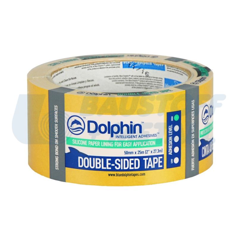 Двойно залепваща лента за обща употреба PP BlueDolphin широчина 50 мм дължина 25 м., с отлична адхезия за закрепване на повечето иделия към гладки повърхности.