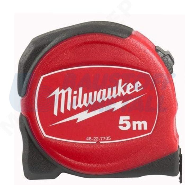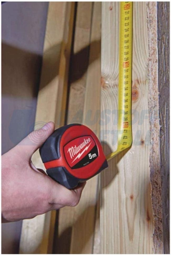 Ролетка Milwaukee S 5/19 - 5м, с подсилена рамка с 4 точки и ABS корпус с мека ръкохватка, плоска основа и облегалка, с подготвен за връзване с ремък, с компактен ергономичен дизайн и защита на острието с найлоново покритие срещу замърсявания и вода, корпус от ABS с гумена зона за захващане Softgrip за допълнителен комфорт и издръжливост на работната площадка, с клипс за колан, арт. No 48227705