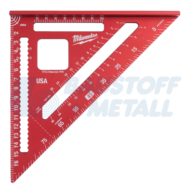 Мултифункционален прав ъгъл с прецизни отвори Milwaukee, с прецизни резци за лесно маркиране, лазерно гравирани маркировки с висока видимост, подпора за тръби за подпомагане при рязане на тръбни материали, увеличена ширина на тока за по-добър захват, арт. No 4932472124