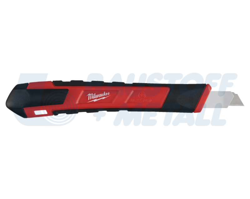 Макетен нож с метален водач 9 мм Milwaukee, с метална закопчалка за максимална издръжливост и по-дълъг живот, заключване със скоростна резба, която позволява по-бързо регулиране на острието, плъзгач за автоматично заключване за по-бързо регулиране на острието, с щипка за джоб на капачката захваща сегменти на острието, формованата дръжка предлага устойчив на приплъзване захват и е устойчива на ацетон, с острие от железен карбид за по-дълъг живот, повишена острота и чисто покритие, за 9 mm ножове, арт. No 48221960