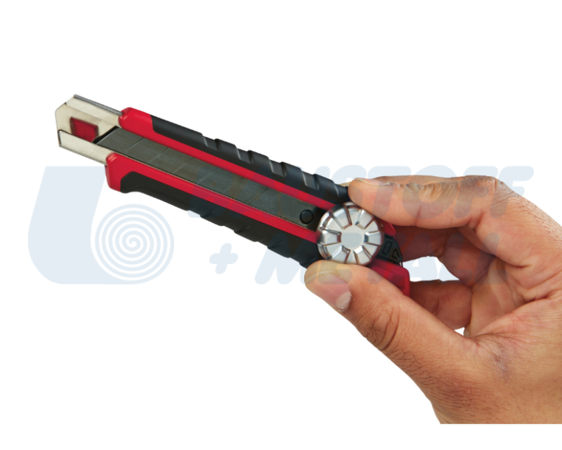 Макетен нож с метален водач 18 мм Milwaukee, с метална закопчалка за максимална издръжливост и по-дълъг живот, заключване със скоростна резба, която позволява по-бързо регулиране на острието, плъзгач за автоматично заключване за по-бързо регулиране на острието, с щипка за джоб на капачката захваща сегменти на острието, формованата дръжка предлага устойчив на приплъзване захват и е устойчива на ацетон, с острие от железен карбид за по-дълъг живот, повишена острота и чисто покритие, за 18 mm ножове, арт. No 48221961