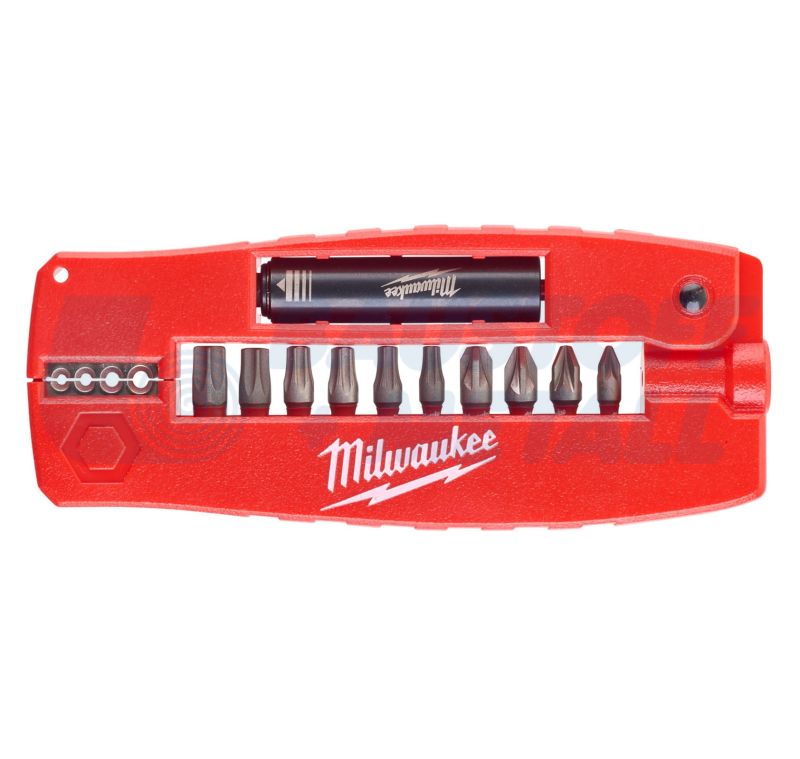 Комплект накрайници Milwaukee Shockwave 12 части, комплектът включва: 1 x PH2, 1 x PZ1 / 2 x PZ2 / 1 x PZ3, 1 x TX15 / 1 x TX20 / 2 x TX25 / 1 x TX30 / 1 x TX40, 1 x държач за водач за накрайници с дължина 76 мм, с приставки за отстраняване на метална тел за Ø 0,75 / 1,0 / 1,5 / 2,5 mm², арт. No 4932430910