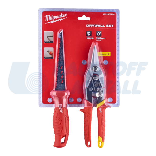 Комплект сухо строителство Milwaukee от 2 части - права ножица за ламарина и трион за гипскартон
