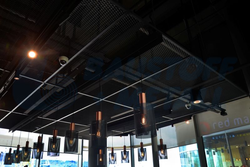 Метално пано SEPA с падащ борд за конструкция Т24 мрежа 30х10 мм, цвят RAL 9005 черно, размер на паното 1200/600 мм, 1 брой пано ( 0,72 м2 ).