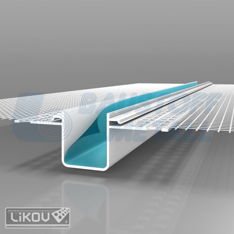 Декоративен PVC профил със стъклофибърна мрежа за фуга с широчина 20 мм, дълбочина 20 мм Likov 520.2025, дължина 2,5 м за изолационни системи ETICS, предлага се в кашон от 10 бр. (25 линейни метра).