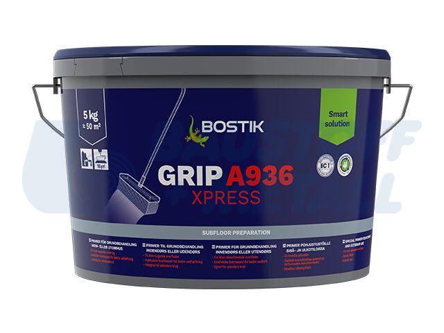 Предлага се във кофа от 5 кг, GRIP A936 XPRESS има време за съхнене от 1-2 часа в зависимост от температурата на околната среда и е подходящ за използване с подово отопление.