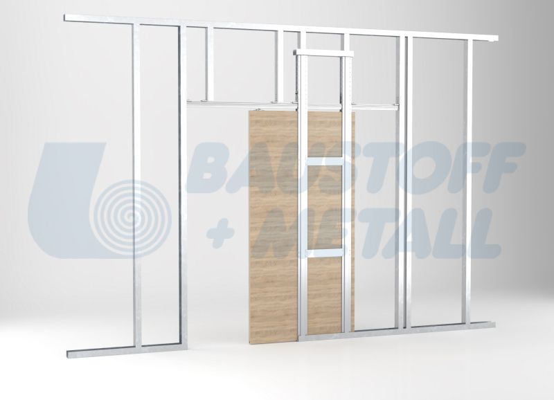 Механизъм за плъзгащи врати Knauf Pocket Kit Easy Standart CW100, арт. номер Кнауф: 776846, система за плъзгащи врати за CW 100 мм, широчини 610 / 735 / 860 / 985 мм, всочина до 2235 мм, включен механизъм за дървена табла до 80 кг (за стъклена табла с тегло 120 кг е необходим допълнителен монтажен комплект).
