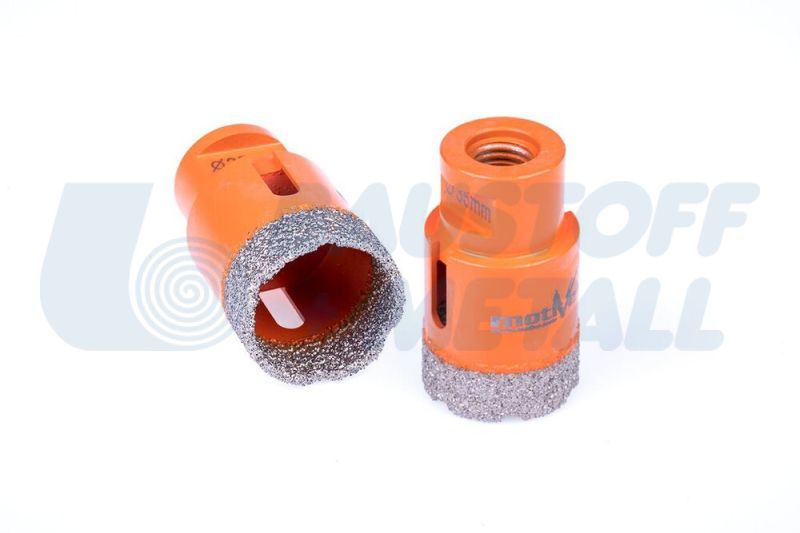 Диамантената боркорона от MOTIVE с диаметър 35 mm и резба M14 е идеална за пробиване в твърди материали като каменинови изделия, гранит, мрамор, керамика и естествен камък. Плътно разпределената диамантена песъчинка, създадена чрез вакуумно наваряване, осигурява висока ефективност и устойчивост на високи температури по време на пробиване.