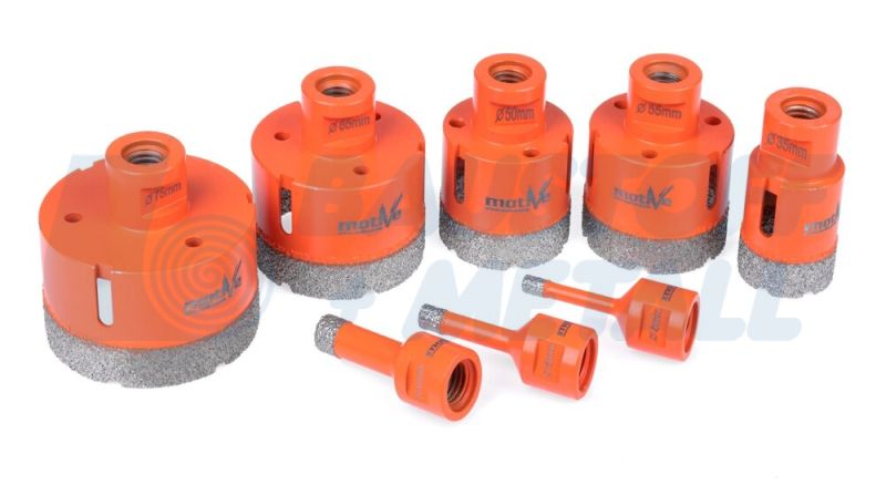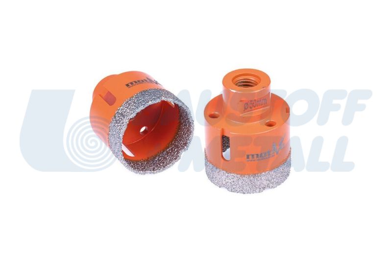 Диамантената боркорона от MOTIVE с диаметър 50 mm и резба M14 е идеална за пробиване в твърди материали като каменинови изделия, гранит, мрамор, керамика и естествен камък. Плътно разпределената диамантена песъчинка, създадена чрез вакуумно наваряване, осигурява висока ефективност и устойчивост на високи температури по време на пробиване.