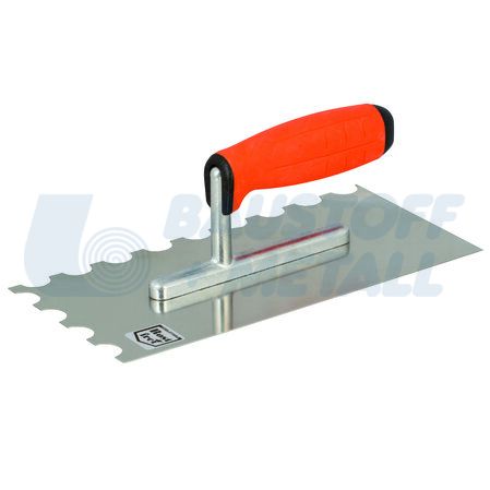 Неръждаема стомана, ергономична и профилирана двукомпонентна дръжка с алуминиев крак. Подходяща за лепене на плочки с големи размери