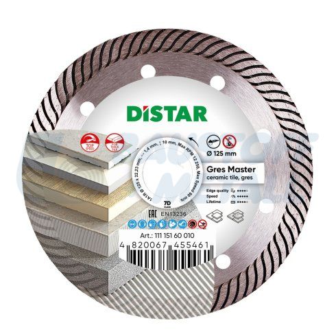 Тази висока производителност го прави най-високоскоростния диск в гамата от дискове на Distar. Дискът е пригоден да реже нормални порцеланови плочки, но с много висока скорост.