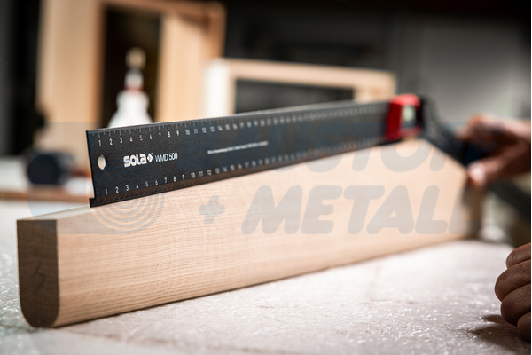 Метричната скала, разположена върху двата лъча, е с контрастен цвят, което осигурява лесно и ясно разчитане на измерванията.