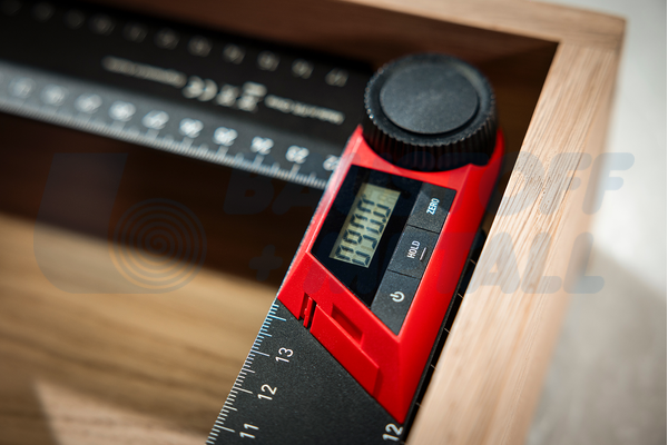 Благодарение на това дигиталният транспортир WMD може да се използва и като права линийка за проверка на равнинността и праволинейността на работната повърхност.