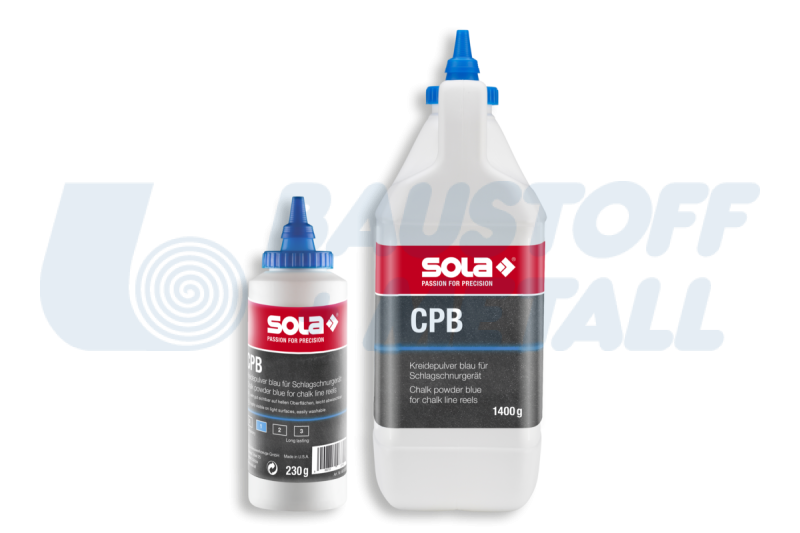 Креда на прах SOLA CPB 1400, цвят СИН, ясно се вижда на тъмни повърхности, фино смлян оцветител осигурява висока видимост, устойчив на дъжд и вятър, опаковка 1400 гр
