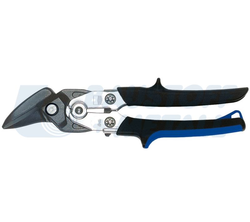 Ножица за ламарина Б+М лява 260 мм, за непрекъснати, прави и извити разрези, с ръбове с микроназъбване за работа без хлъзгане, предлага се във варианти дясна или лява, обща дължина: 260 мм, дължина на острието: 33 мм, дебелина на листа (600 N/мм²): 1.2 мм, тегло 0,56 кг