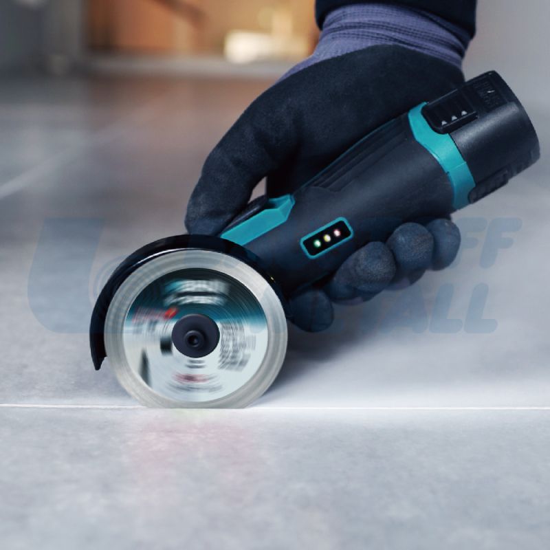 Акумулаторен Мини Флекс Ъглошлайф BIHUI AGMN76 (12V, 76мм), изключително компактен и ергономичен, със заключване на шпиндела с резба M5, подходящ за диамантено острие с диаметър 76 мм (3"), за рязане и грубо обработване на всички видове плочки.